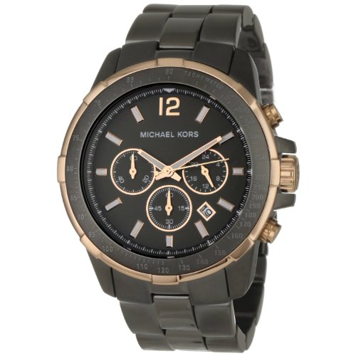 This gunmetal watch is the ultimate in chic and Michael Kors stays right on trend by pairing it with rose gold-tone accents. With a gunmetal stainless steel case and band and gunmetal dial, this watch is sharp and fashionable!