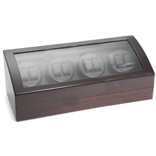 For people who do not wear their automatic or self winding watch every day, or have more than 1, watch winders are available to store automatic watches and keep them wound. This is particularly advantageous if the watch had complex or perpetual calendars or moon phases. A watch winder is a device that can hold watches and moves them in circular patterns to approximate the human motion that otherwise keeps the self-winding mechanism working. An automatic self winding watch should be kept wound and running as much as possible to prevent its lubricants from congealing over time, which diminishes accuracy. This unit winds 8 watches at a time, and runs on included 110V-240V AC adapter, it also provides storage for 9 more watches, exterior is made of wood with an Ebony Finish, interior is lined with soft Black leatherette and see through window is plexi-glass. This watch winder has 5 different program settings. Knob program settings: 1st stop: unit is off. 2nd stop: winder will rotate clockwise for 2 minutes and rest for 6 minutes. 3rd stop: winder will rotate counter-clockwise for 2 minutes and rest for 6 minutes. 4th stop: winder will rotate clockwise for 2 minutes, rest for 6 minutes then it will rotate counter-clockwise for 2 minutes, rest for 6 minutes. 5th stop: winder will rotate clockwise for 5 minutes then counter-clockwise for 5 minutes. This cycle will repeat continuously for 3 hours then rest for 9 hours. Please keep in mind that this winder will not work on Seiko Kinetic watches. This winder is manufactured by Diplomat. Diplomat offers a full 1 year warranty for this product so you can rest assured that your purchase is protected against defects. The winder measures 25 X 11 X 9.5 Inches and also doubles as an exquisite piece of furniture.